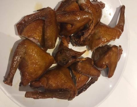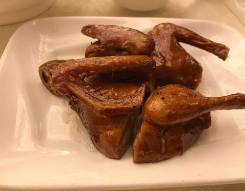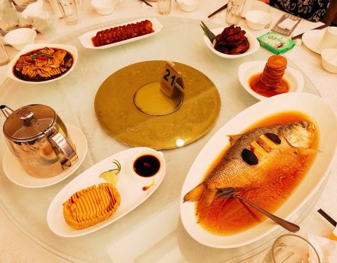 [环境]小年夜的聚餐又开始啦,今年包房没预订到,只能坐大厅里了。大厅里放了很多大圆桌,都是提前吃年夜饭的老食客们,顺风生意就是这么好。 [服务]人一到齐大堂经理就叫服务生帮我们上菜,冷盘没上齐就上火焖鲥鱼了,而西瓜汁还没上呢。速度好快,没办法看一个个菜从后厨端出铺满了整个台面我们吃的速度也只能加快啦。 在提速下,一桌满满当当的菜慢慢逐个消灭,送菜员要收一个空盆才能放下一个新菜,我们尽量配合啦。看看左右陆续到来的食客,很多都是举筷等菜上,有菜总比没菜吃好很多。而服务生也忙到飞起,应接不暇,我们要换的口汤碗也是服务生特意从厨房间刚洗后拿来,人多事多,能做到如此实属不易。 |五香素鸡^不要看这个看似普通的家常菜,要烧的颜色正常入味还不老,还是需要点水平的。 |马兰头香干卷^卷起来不会洒落,又有马兰头的清香,很爽口的前菜。 |蜂蜜老南瓜^这个南瓜品种好,又甜又糯,我们连糖水也喝光了。 |XO酱拌黄瓜苗^一直很喜欢这道菜。 |顺风海鲜冬瓜盅^很气派的一个海鲜盅,用整个冬瓜做成的盛器,外皮雕刻花纹和文字,里面放海鲜羹,好看又好吃的菜式。 |蜀香牛蛙走地鸡^这个第一次吃,牛蛙和走地鸡又鲜又嫩,蛮灵的。 |川味牛肉^看似火辣辣的红油铺满牛肉,其实能够承受,现在怎么口味越来越重了。 今年年夜饭配的套餐大多数是我们平时一直吃的,哥哥又添换了几个菜,总体菜式还是保质保量的,几个平时不吃的菜偶尔吃觉得有亮点。 席间大家举杯,愿身体健康,欢欢喜喜开启一年好光景。