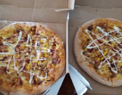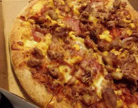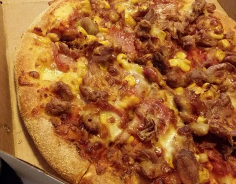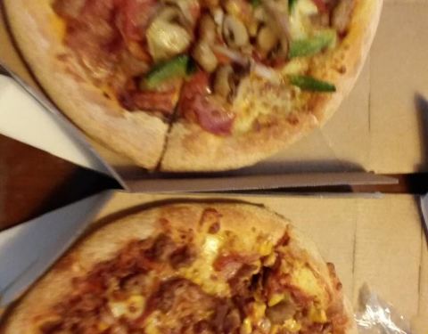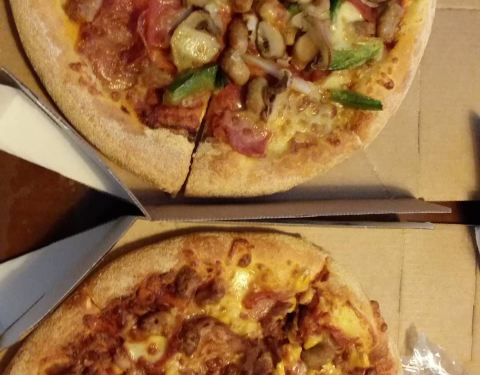 - 披萨说不上多好吃,每次就选手上有折扣券的那款,牛肉披萨的肉挺多的,就是偏咸,幸好加了俩小甜点