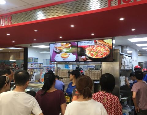 - 平时的生意就不错,现在因为周末有促销是要排队。这家店他的店面非常的大,可以比得上肯德基麦当劳