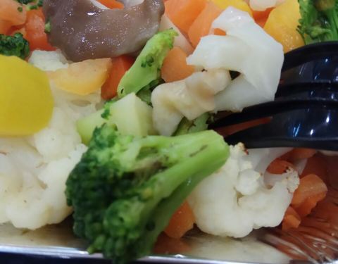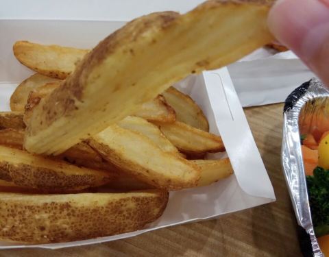 薯角边角脆脆的里面却是软软的,本身带点咸味,好吃。蔬菜很烫,量不大品种有五六种,但本身没调味