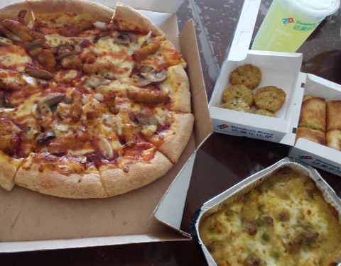- 这一餐可以说吃得非常饱、非常满足,回味无穷,以后如果有空的话,还会再次享用达美乐披萨的各类小吃