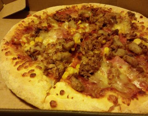 在上海市黄浦区蒙自路上的一家“达美乐比萨”店,生意一直算是比较兴隆的,这家店除了有堂吃以外,还有在网站页面上预订好自取和预订好送货上门两种形式。选择的余地还是蛮多的。现在达美乐还搞了特定的几种披萨饼:“买一送一”的促销优惠活动,很实惠的。买一个披萨再能送一个,就是说原来买一个披萨饼的钱现在可以买两个了,喜欢披萨的顾客们可别错过了这家店哟! 我在这次定了金枪鱼披萨和美式腊肠披萨,前者的海鱼肉比较新鲜,滋味鲜美异常;后者则是在披萨饼子上加了一些番茄酱,配上烤熟的美味美式腊肠,更增添了一份别样美味,令人不禁大快朵颐起来!