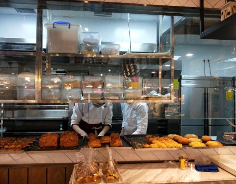 - 这是一家整体环境很不错的面包蛋糕店,开放式的柜子放上各种各样美味的面包和小点心,很是干净和有序...