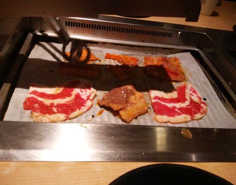 昨天和朋友来吃晚饭,周五正好赶上工作日哈哈,工作日团购还蛮划算的,用了积分和红包还便宜了15元一共! 三个人双人餐还加了三个菜,吃得饱得来!嘴唇还烫伤了,被自己蠢哭! #孜然牛肉# 这个最好吃,但是量比较少,不够吃哈! #招牌调味五花肉# 个人不喜欢调味的,还是原汁原味好。 #秘制梅花肉# 和五花肉比较像,傻傻分不清! #培根金针菇卷# 味道不错,烤起来很方便~ #螺旋藻鱼豆腐# 这个居然算蔬菜,有点惊呆!小朋友不喜欢,大人都觉得不错。 #生菜# 没吃几块哈哈,不爱生吃。 #桂花乌梅汁# 太甜了。 后来又点了章鱼,牛肉,还有牛舌。 服务员态度很好的说,我围巾忘记拿了还帮我送出来~ 上一次吃新石器时代是大学时期,都过去七八年了,好怀念…
