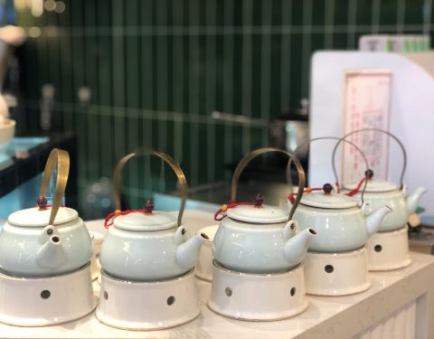其实看到这家店位于日月光,心里有点噶德德,迷宫般的设计,想找一家店真的不容易,还好店家考虑的很周到,地址里写清楚了地铁2号口,厚贞的旁边,这样就方便很多了 提前电话☎️预约,晚上到店,已经要等位了,座位间距离真的很近,桌子也蛮小的,它家才盘都特别大,最多只能放三个吧…… 套餐里的奶茶都卖完了,领班特地过来打招呼,换了热柠茶,其实更好,奶茶喝了肯定睡不着[笑哭]…… 烧鹅是in菜,装在钢棕锅子里上桌,肉质很紧实,处理的也很干净,香嫩入味,忍不住吃了好几块; 其他菜也都不错,就不一一赘述了,直接跳到最后的甜品吧…… 芒果小金鱼,大概等了快1个小时才上来,这道菜原来就是在前面饮料吧台区做的,上的如此龟速,我觉得应该是托盘备货不够吧,不过好吃还是蛮好吃的,软糯清甜的口感,作为饭后甜品还是推荐的!