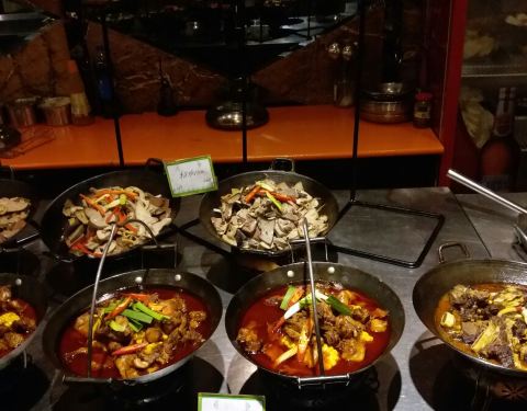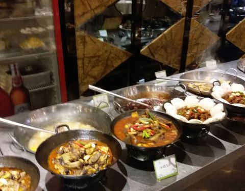 过年亲戚请客到我这家,人气蛮旺的,生意很好,大堂基本坐满。 环境不错,一进门就有一片是现烧区。看起来还不错。 菜本帮为主,菜量还行,味道可以,喜欢黑椒牛肉粒,酒酿圆子,德国猪手等。招牌的炒蟹一般,感觉奶油炒的,味道有点淡。