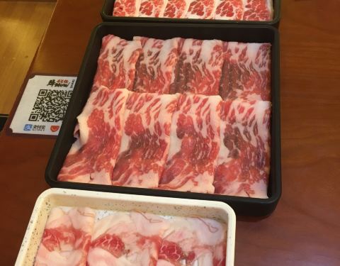 买的平日午市双人套餐,牛羊猪肉、虾、蔬菜、乌冬面、可以生吃的鸡蛋等,两个人吃正好。他家是自助餐为主,两个人三百多,自认为也吃不了多少,所以还是套餐实惠。地址在徐家汇辛耕路,离地铁站八分钟路程。