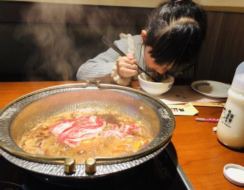 喜爱寿喜锅的福利之选!就是排队好辛苦!4点45分到的,第一波没进去,然后排了将近两个小时才进去的。点了晚市158一个人的套餐,小朋友140以下的半价,主要是吃牛肉的,肉质还可以吧!锅底有点偏咸,加了点清汤感觉好多了。服务非常好,一直来关心有何需要,排队等位,还每人送了一瓶奶,挺可爱的奶瓶装。最后的甜品,芝麻味的冰淇凌不错,还有很多口味大福,但是吃不下了。