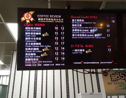 九亭镇上好像没有甜品店,去了85度C,老公说要喝咖啡,店员服务特好,大杯咖啡17元一杯,推荐我买了100元优惠券,总共10张优惠券。那里人特多,一波又一波,生意特好,唯一的缺点就是堂内是布艺沙发,太脏了,儿子都不要坐!