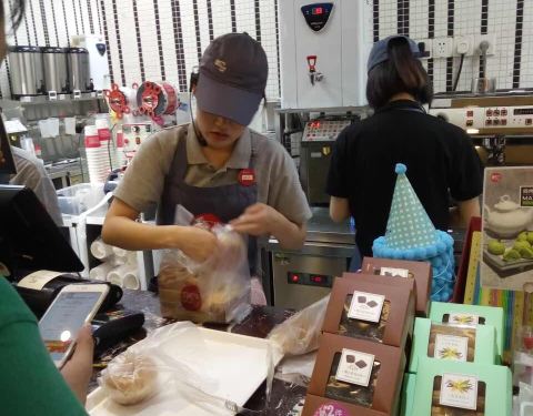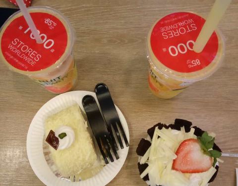 感觉很困,就来到85度C买杯咖啡,顺便买了点面包,然后想起明天过生日,又买了一个蛋糕,感觉这家店的东西都还可以,性价比还行哦