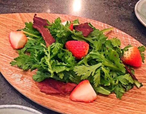 进门就见到很多新鲜五彩的时蔬装饰,中间是配菜的大厨房,开放式的, 周边一圈吧台位,好多客人都坐在那里吃有点点日式的感觉,很热闹, 台湾野生乌鱼子 野生的噢〜据说很珍贵的,就这么放在嘴里细细嚼鲜是鲜的不...进门就见到很多新鲜五彩的时蔬装饰,中间是配菜的大厨房,开放式的, 周边一圈吧台位,好多客人都坐在那里吃有点点日式的感觉,很热闹, 台湾野生乌鱼子 野生的噢〜据说很珍贵的,就这么放在嘴里细细嚼鲜是鲜的不得了呢。 黑毛和牛肋眼 这个肉肉最最嗲了,细腻的雪花久烫也不会老,很嫩的最最喜欢吃了。