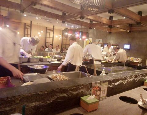 有点小贵,主打有机,菇类品种丰富,可以享受自己现剪现吃的感觉,环境有点日本风,中间是围着厨师一圈的座位,适合4人一下散客高脚椅,旁边基本是方桌