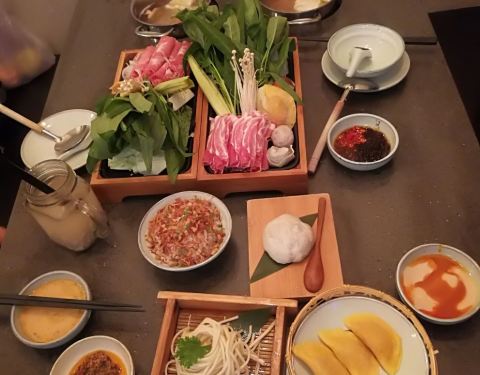 老板请老板,我们蹭个饭,一人一口锅,门面略大食材新鲜,主打有机蔬菜,点了几个肉食拼盘海鲜拼盘,雪蟹肉质很嫩但不是很饱满,总体来说吃口比较清淡。服务的妹子随喊随到服务棒棒哒。