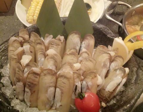 进门就见到很多新鲜五彩的时蔬装饰,中间是配菜的大厨房,开放式的, 周边一圈吧台位,好多客人都坐在那里吃有点点日式的感觉,很热闹, 台湾野生乌鱼子 野生的噢〜据说很珍贵的,就这么放在嘴里细细嚼鲜是鲜的不得了呢。 黑毛和牛肋眼 这个肉肉最最嗲了,细腻的雪花久烫也不会老,很嫩的最最喜欢吃了。
