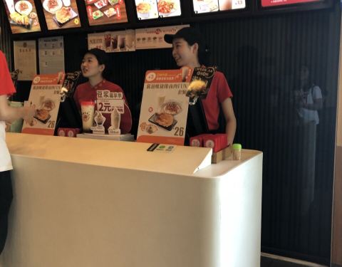 生意一直很好,喜欢永和豆浆和油条,不喜欢油条蘸酱