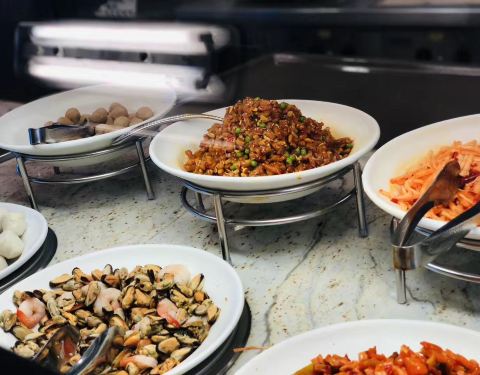 老牌宾馆闹中取静关键很棒,还是洲际酒店品质有保障,家人团购的午餐还是挺优惠的,生冷区相对品种比较少,有龙虾、青口、生蚝都挺新鲜的;热菜区的大虾品质不错,肉质鲜嫩弹性十足但蟹的品质一般有点软,其他肉类也挺丰富的,烤鸡、烤鸭、小牛排也不错,但最喜欢的还是甜品类,小蛋糕做得就很精致,味道都很不错,毕竟五星家酒店的水准放在那,搭配一杯咖啡刚刚好,最后再来一个冰淇淋收尾,满满的幸福感外加满满的热量,环境不错适合家人、朋友聚餐,性价比挺高的,推荐!