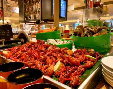 午餐自助的,甜品和蛋糕品种很多,水果也不少,芝士小龙虾和冰镇小龙虾好吃