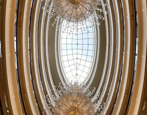 用了某银行的自助餐权益,预定了洲际琅庐的午市自助。位于上海瑞金洲际酒店主楼的西餐厅,从瑞金二路的门进来,还有楼宇在装修,问了保安才知道琅庐的位置。 ☞ 环境:欧式简约优雅的设计元素,餐厅的天花板,精...
