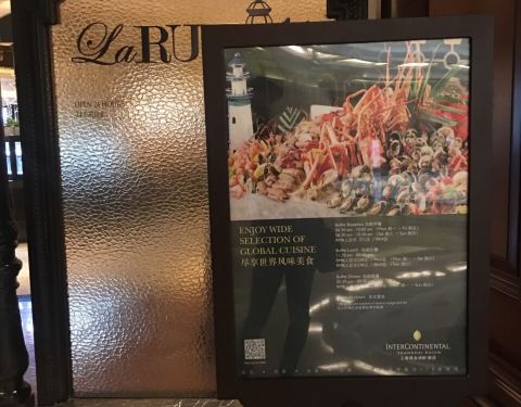 瑞金洲际酒店琅庐自助餐厅 位于瑞金洲际酒店主楼的一楼,可能是我吃过最差劲的五星级酒店自助餐,品种真的很少,刺身也没有,十二点多就过去的时候连牛排都没有了。