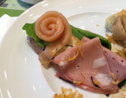 甜品类很多,有块巧克力蛋糕挺好吃的。还有凉粉,这个自助餐很少见。金枪鱼吃起来松散,不行