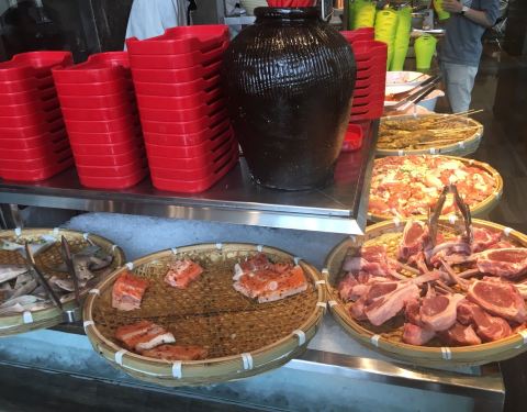 周末的生意还是挺火的,原来的主打刺生已经不多了,只有三文鱼和金枪鱼,小龙虾倒是多的,有冰镇麻辣蒜香的