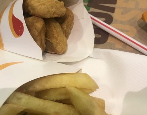 配好餐再去拿非常方便,新出的虾➕鸡排堡很好吃,鸡条味道一般,人还挺多的,不是用餐高峰时间都坐的满满的