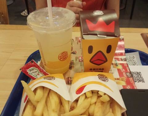 蛮喜欢汉堡王的,用料相对比较好,他家的番茄酱用的是亨氏的,薯条也是粗的那种; 不过环球港这家感觉空调开的不足,座位倒是还可以,有些沙发位的,而不是全部是硬板凳。 现在注册新会员有送一个圆筒。