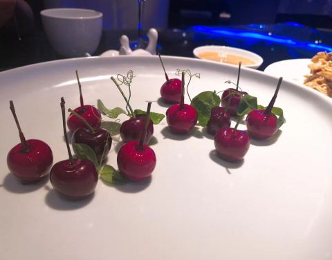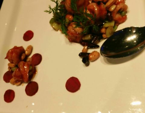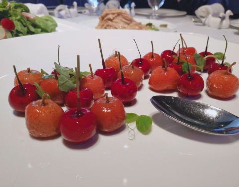 栗子白菜是除了烤鸭最最满意的一道菜,吃得很爽。宫保虾摆盘美观,看着就很有食欲,虾仁弹牙个头也不小,量还是比较足的,最后都没吃完。番茄脆菇沙拉本来以为是用樱桃小番茄做的,所以点了一例,其实是中等个头的番茄,皮挺厚的那种,应当点单只尝尝鲜的就好了,味道不功不过。狮子头和老豆腐都还行,没有特别出彩的地方。托寿星公的福,免费赠送了一碗寿面,味道满好。寿星不喜鹅肝所以没点樱桃鹅肝,本来还点了江雪映小排,漏单了,不过也实在是撑不下东西所以没补,这两个留着下回来试吧。