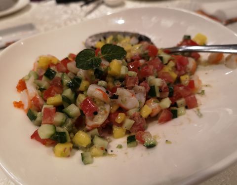 - |芥末虾肉色拉^虾肉配上淡淡的芥末味,倒也爽口好吃~来这家吃饭,预约晚了,所以很可惜没有包房了