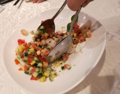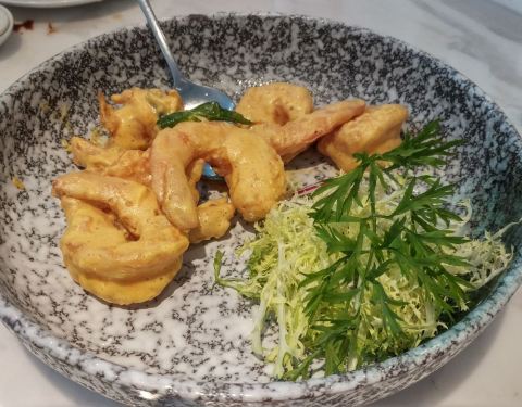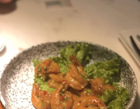 |芥末虾肉色拉^虾肉配上淡淡的芥末味,倒也爽口好吃~来这家吃饭,预约晚了,所以很可惜没有包房了