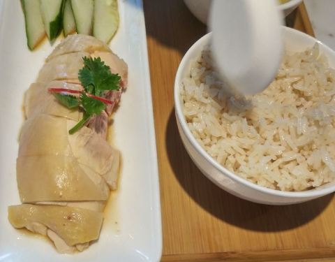 - 酱汁也特别多,蛏子很大一只,放了蒜蓉粉丝去蒸,太好吃了,海南鸡饭很嫩滑,饭也很香,还可以点个饭后甜品