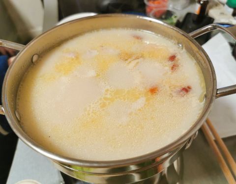 开在巴黎春天里面,楼上吃饭的地方很多,这一次我们选择吃火锅。很好吃。花生冰沙配着一起吃还是很完美的
