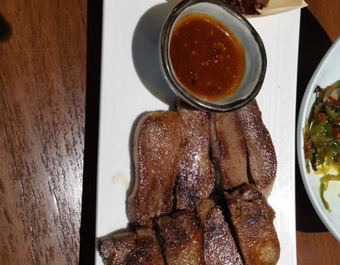 ▪️铁板煎羊排(88元)不好吃。 ▪️黑椒香煎厚牛舌(88元)很多人推荐的牛舌,但我觉得真心一般,甚至觉得有点腥。 ▪️铁板小八爪(58元)唯一五星好评的菜居然是除了芥末章鱼外最便宜的了,很香很有嚼劲推荐...