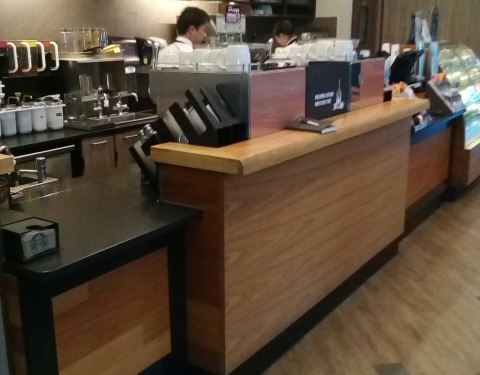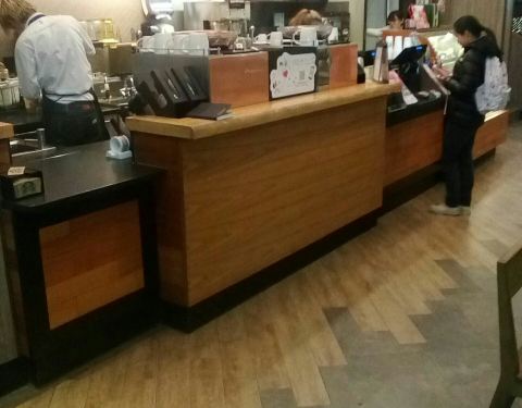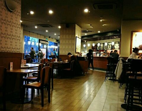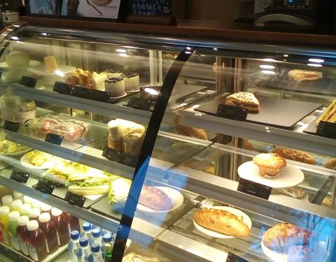 门店规模较大,上下两层,内部整洁干净,装饰美观,收银员接待热情,这里为顾客提供各种现场制作的咖啡饮品,醇香浓郁,味道可口,还有各种西点、色拉。