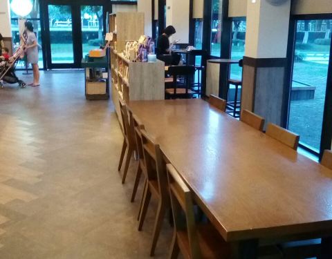- 楼上楼下都有露天用餐区,非常受周边社区居民欢迎,晴好天大家都爱点上一杯香浓的现磨咖啡坐在室外谈天说地