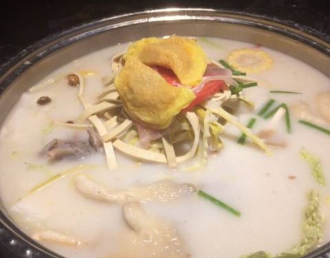 2016年3月12日,同学小生日,就去了这家店。当时有活动,7.8折(仅限菜品)。骨头汤里的骨头不算菜品,算锅底。调料和饮料是无限自助的。东西的味道还不错。性价比还是蛮高的 #交通#公交981路,上南路昌里路站 #美食#因为是火锅,所以,没有什么不好吃的。 大招牌养生骨头锅,骨头不多,想再填,就要花大价钱,而且不打折,感觉不合算,就没填了。骨头汤还是不错的。 特选肥牛卷,好吃,很嫩。 肥牛舌,我的最爱,怎么吃都不腻。 韩式肥牛,有点辣,大概是因为是韩式的缘故吧。 黑毛猪肉,纯粹是为了猎新,感觉不错,就是有点硬。 手工牛筋丸,口感不错,有劲道。 蔬菜类,为了提升汤的味道,还是很不错的。 #服务#无功无过 #环境#很好。