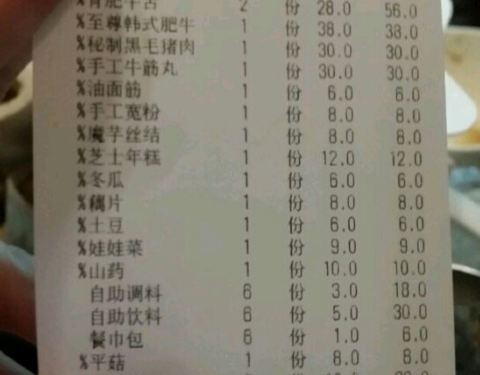 2016年3月12日,同学小生日,就去了这家店。当时有活动,7.8折(仅限菜品)。骨头汤里的骨头不算菜品,算锅底。调料和饮料是无限自助的。东西的味道还不错。性价比还是蛮高的 #交通#公交981路,上南路昌里路站 #美...2016年3月12日,同学小生日,就去了这家店。当时有活动,7.8折(仅限菜品)。骨头汤里的骨头不算菜品,算锅底。调料和饮料是无限自助的。东西的味道还不错。性价比还是蛮高的 #交通#公交981路,上南路昌里路站 #美食#因为是火锅,所以,没有什么不好吃的。 大招牌养生骨头锅,骨头不多,想再填,就要花大价钱,而且不打折,感觉不合算,就没填了。骨头汤还是不错的。 特选肥牛卷,好吃,很嫩。 肥牛舌,我的最爱,怎么吃都不腻。 韩式肥牛,有点辣,大概是因为是韩式的缘故吧。 黑毛猪肉,纯粹是为了猎新,感觉不错,就是有点硬。 手工牛筋丸,口感不错,有劲道。 蔬菜类,为了提升汤的味道,还是很不错的。 #服务#无功无过 #环境#很好。