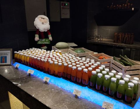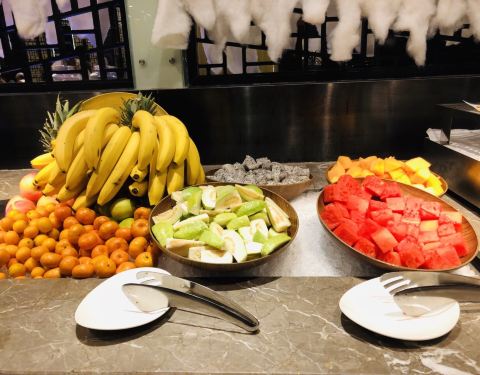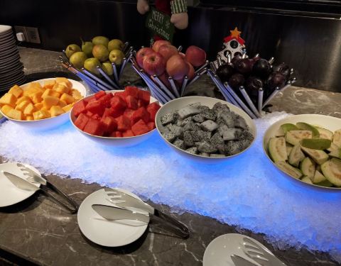 环境还ok的,正好去的时候遇到圣诞点灯,氛围蛮好的。这家还是第一次来,主要是离我比较远,交通还算方便的。自助么主要就是吃几个给力的,经过我吃下来我觉得他家水果还蛮好的,西瓜、哈密瓜、火龙果等等,新鲜度很好,水灵灵的。 蛋糕带有圣诞的元素,貌美,喜欢甜食的可以是尝尝,我倒还好,过过眼瘾就够了,这些总体来说容易发胖。 值得安利的是他家的羊排和牛排,烤制的不错,当然有款煮的羊排更是提现原汁原味。三文鱼厚切,随便取还有别的生鱼片等等。吃了2圈最后来一份冰淇淋,好像是新西兰的品牌,还可以。