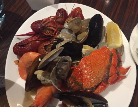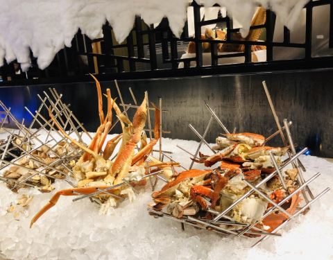 中星铂尔曼酒店有三个餐厅,分别为中餐厅、西餐厅和日料。西餐厅为自助餐厅,晚餐价238元。正值小龙虾季,这里也主打小龙虾。不过与几年前相比,明显感觉成色下降不少。先说小龙虾,只有四个口味,除冰镇话梅味不错外其他都乏善可陈,而且小龙虾太小了,都是些挑剩的。其他只有一点点生鱼片、一点点烧烤、一点点油炸,一片的米线。见图,基本吃全了。
