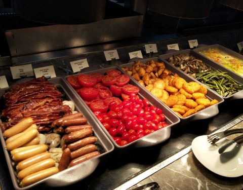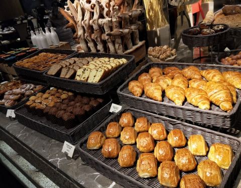 分为几个区域,一个是面包甜品区域,一个是肉类区域,一个是饮料区域,当然,还有比较常规的明档可以选择
