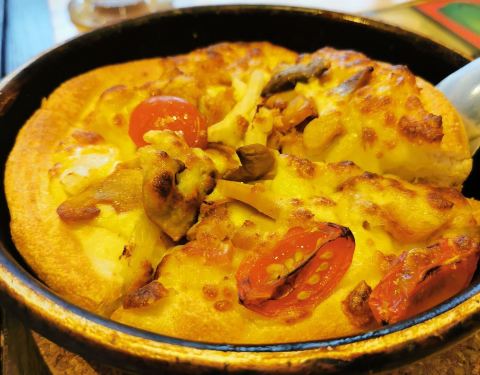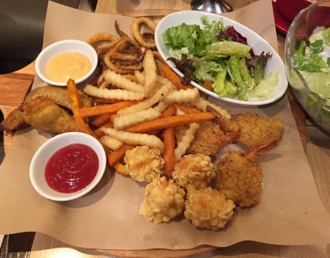 必胜客出新品,海陆双拼起酥披萨味道不错,虾仁实实在在看得见,西班牙海鲜饭的米饭,香草凤尾虾和匈牙利牛肉焗饭也常吃,小食拼盘里面的虾饼鱼饼做得不错,店里环境也不错,上菜速度蛮快的