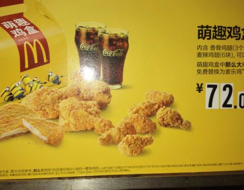 麦当劳最出名的自然是要选择麦乐鸡和麦辣鸡翅了。这家麦当劳的店里布置得很干净,店里的服务员很热情,点菜也很迅速。不过,给的麦辣鸡翅貌似有些凉掉了,嚼起来有些老。整体还不错啦!