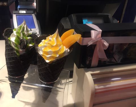 换乘地铁的时候经常来这里买早饭。价格算算比便利店卖的还便宜。 汉堡+咖啡,6、7元就搞定了。 那么大甜筒15块一只。抹茶口味的抹茶酱味道有点奇怪。奥利奥饼干有点软掉了。还是黄桃菠萝口味的更好吃一点。