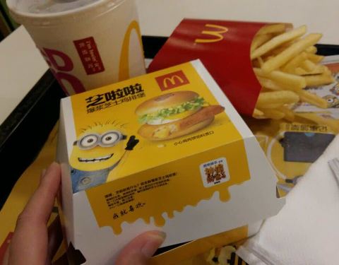 - 刚看了《神偷奶爸》奔着开心乐园儿童套餐的玩具~小黄人去的,结果玩具没有啦,有点小失望