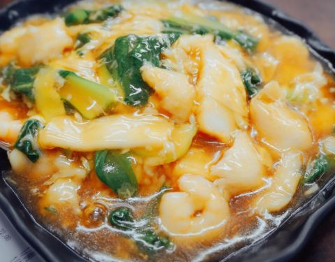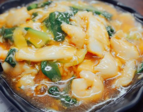 『2017年7月2日』 味道依旧,价格略涨 还记得两年前吃这家的时候我就很爱很爱,很爱很爱了。因为他们家的那个奶香蛋黄炒虾真的是无敌完美,完全惊艳了我,我感觉我就舔盘型的。 这次来到这家的时候生意依然很好,我们大概12点左右到的吧,只有一个靠厨房的位置了,靠窗的位置还有点脏,但是我们已经没有办法了,就坐下来了呗。 依旧点了我最喜欢的几样东西,老公的嘴巴长了智齿不太能吃,所以就帮他点了个烩饭。因为我知道会饭就有点像汤泡饭的感觉,所以就把它点了这个。 ✨奶香蛋黄炒虾✨ ¥45 上来的时候依然感觉他就跟原来的真的是一模一样,一模一样一模一样。重要的话要说三遍。炒下一共有六只我不记得,之前吃十几只了,但是在价格上面呢,只是从43块钱涨到了45元,自己长了两块钱吗?两元两年,我觉得这个性价比还挺高的。而且蛋黄的奶香味也很十足,就又想舔盘。但我觉得如果我一个人吃着一份的话,其实也不用给别的菜了,因为我吃完这一份我就超饱了。 ✨海南鸡✨ ¥26/例 不得不说我觉得这个价格并不贵呀。海南鸡我在外面吃的话,一份饭加上油鸡饭都要四五十元了吧,这里居然只要26元1例,而且这一比例还蛮多的。最主要就是鸡肉都很嫩,就算是鸡胸部分都很滑很嫩很香,很好吃,蘸着酱哇,简直就是美味,性价比又高。 总结:|⭐️⭐️⭐️⭐️| 会放红花给我,在这里说一下吧,烩饭的味道嗯,真的不怎么样,真的就是泡饭,虽然海鲜和浓郁还蛮多的,不知道是不是容易有可能是巴沙鱼,因为这两个鱼我总是分不清。花果山还挺辣的,挺入味的,可是他的量看上去多,但很多贝壳都打不开,然后啊,要不就是没有肉的,就是看上去多,但是其实不划算。总体来说,就算只是为了虾和海南鸡,我也愿意再顾n多次。 这里面有很多照片,是15年我拍的,后面的才是17年拍的,其实还蛮容易辨认的,大家自己看看吧。