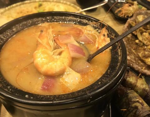 我爱东南亚风味儿 差不多十一点就要开始排队的一家店 本来明明家里附近就有一家不用排队 却活生生被拽到了总店 号称总店厨师手艺好 但是排队的人很多呀 早早地就到店了 面积不是很大的 点了几个招牌 我爱吃肉肉呀我爱吃肉肉 咸蛋黄草虾好好吃 可是只有没几个不够吃 其他菜就一般般了感觉 吃的时候不停有外卖冲进来生意真心好呀