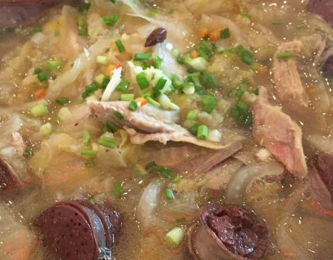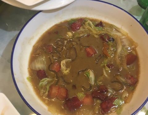 两个人,点了个京酱肉丝,尖椒干豆腐,酱大骨,香菜豆腐羹,韭菜盒子,一瓶纯生,点好后,差不多有一刻钟的时候,另一个服务员过来说,前面两样没有了,准备换别的类似的,也没有,说豆腐皮没了,算了,随便换个...两个人,点了个京酱肉丝,尖椒干豆腐,酱大骨,香菜豆腐羹,韭菜盒子,一瓶纯生,点好后,差不多有一刻钟的时候,另一个服务员过来说,前面两样没有了,准备换别的类似的,也没有,说豆腐皮没了,算了,随便换个地三鲜了事。等了半天来了个汤,然后是酱大骨,韭菜盒子,吃完,酒还没上,算了,叫服务员买单,单子上一看,有酒在内,地三鲜没有,晕死,付款走人,菜味道不错,但这服务真是没心没肺的。