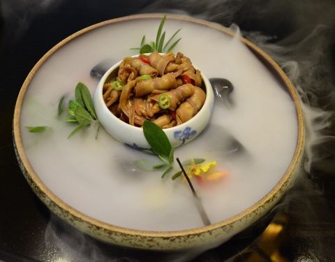 宫廷八宝鸭:豌豆、火腿、 虾仁、 冬笋、香菇、糯米、玉米、胡萝卜等等酌料,鸭肉已然酥烂,一勺入口,层级感强烈,腴香浓溢 阿拉斯加帝王蟹腿配牛油果酥皮:光看样子以为是个牛油果色拉 原来里面暗藏了阿拉斯加帝...宫廷八宝鸭:豌豆、火腿、 虾仁、 冬笋、香菇、糯米、玉米、胡萝卜等等酌料,鸭肉已然酥烂,一勺入口,层级感强烈,腴香浓溢 阿拉斯加帝王蟹腿配牛油果酥皮:光看样子以为是个牛油果色拉 原来里面暗藏了阿拉斯加帝王蟹腿 正确吃法是滴管滴入红醋汁 舀一勺牛油果蟹腿肉放在酥皮之上 一起入口 感受美妙 熬香乳鸽:金蝉丝上卧、做鬼也风流 本以稀松物、实属珍馐馔 香酥已入骨、秘制难探求