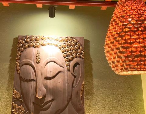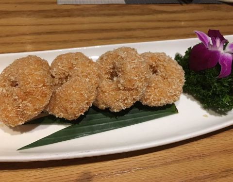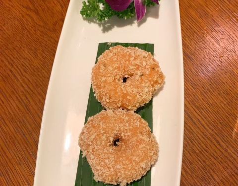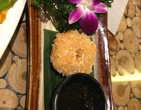 第一八佰伴的明泰谷泰国休闲餐厅,到处都是泰式风格的装饰,佛系风格,虾饼小小两个,虽然量少,但也足够了,菠萝炒饭很有趣,造型很好玩