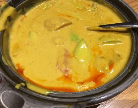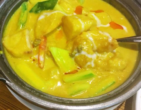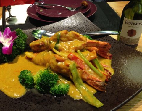 ...原先那边老店略便宜了,不过服务差了,菜的味道倒是还可以,冬阴功汤、咖喱大虾味道做的很好,很正点